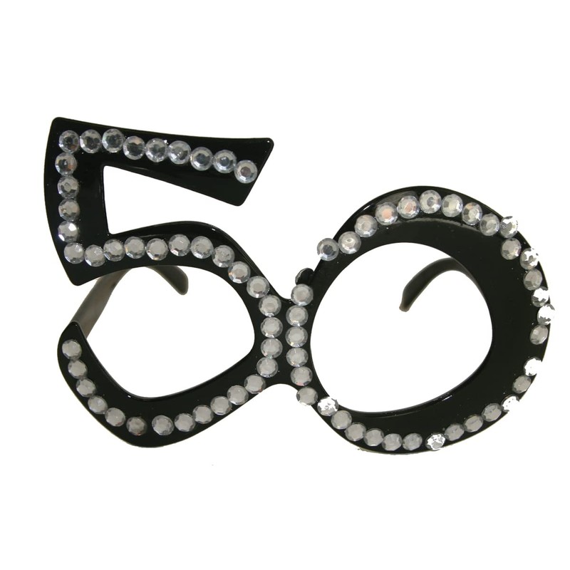 Folat 00753 50th Birthday Glasses Black with Diamond Frame, 50 (EU)