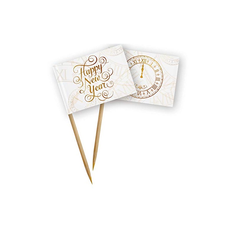 - Happy New Year Party Picks White with Gold Print for New Year's Eve and Party