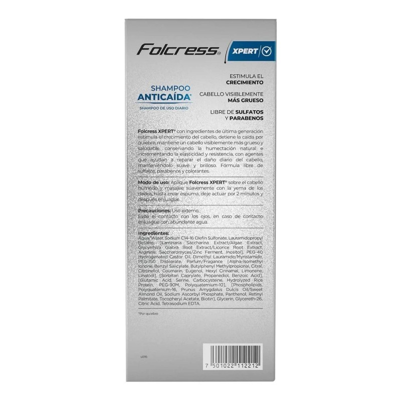 Folcress - Folcress Xpert Shampoo anticaída hombre - Sin sulfatos ni parabenos, shampoo folcress para caída de cabello, uso diario, cabello visiblemente grueso - 250 ml. 💯 Autenticidad y máxima durabilidad comprobadas. Construcción robusta y atención al detalle. 🏆 Recomendado por expertos. Ideal para quienes buscan lo mejor en calidad y estilo. Producto auténtico con satisfacción total asegurada. ¡No te quedes sin el tuyo y aprovecha esta oportunidad única!