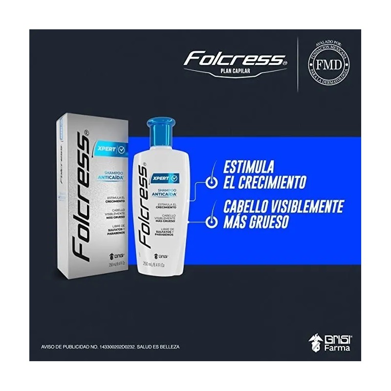 Folcress - Folcress Xpert Shampoo anticaída hombre - Sin sulfatos ni parabenos, shampoo folcress para caída de cabello, uso diario, cabello visiblemente grueso - 250 ml. 💯 Autenticidad y máxima durabilidad comprobadas. Diseño ergonómico y funcionalidad excepcional. ⏰ Oferta por tiempo limitado. Ideal para quienes buscan lo mejor en calidad y estilo. Producto auténtico con satisfacción total asegurada. ¡No te quedes sin el tuyo y aprovecha esta oportunidad única!