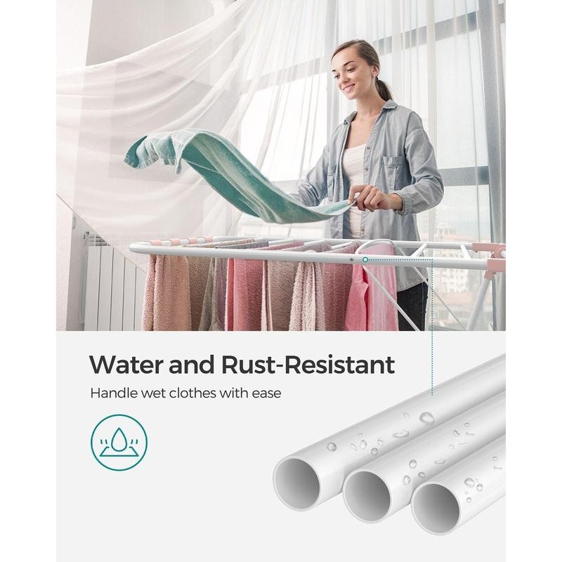 Description Clothes Drying Rack, Foldable 2-Level Stable Indoor Airer, Free-Standing Laundry Stand, with Height-Adjustable Gullwings, for Bed Linen, Clothing, Socks, Scarves, White ULLR053W01 Features