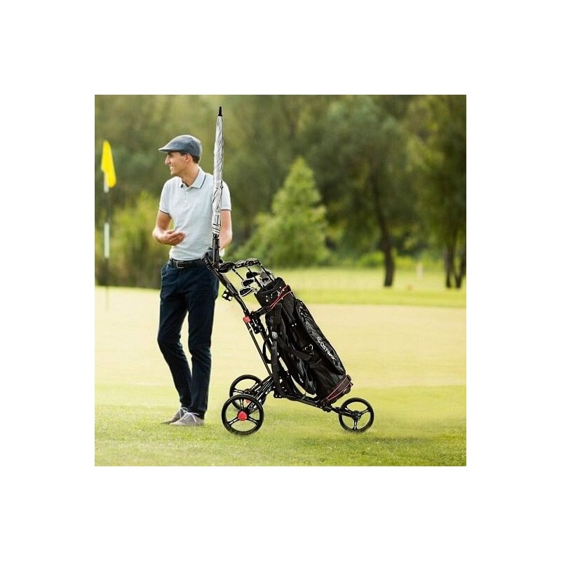 Foldable 3 Wheel Golf Pull Push Cart Trolley - Color: Black