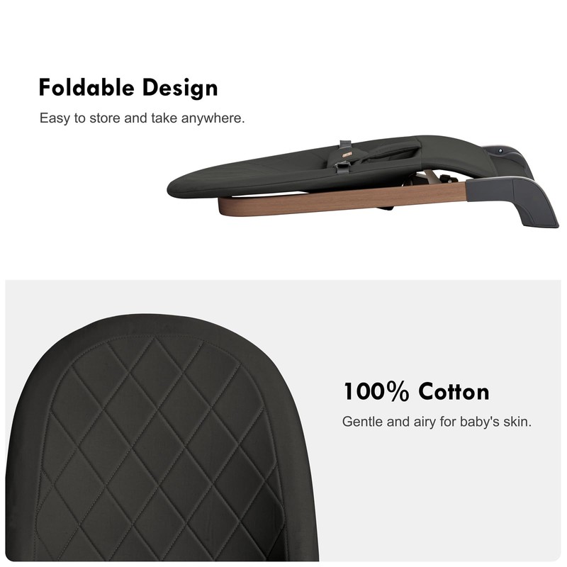 Foldable Baby Bouncer, Baby Seat with 3 Adjustable Heights, Portable Newborn Rocker, Ergonomic Bouncy Seat for Natural Bounce, Bouncer for Babies 0-6 Months, Soft Cotton (Charcoal Gray)