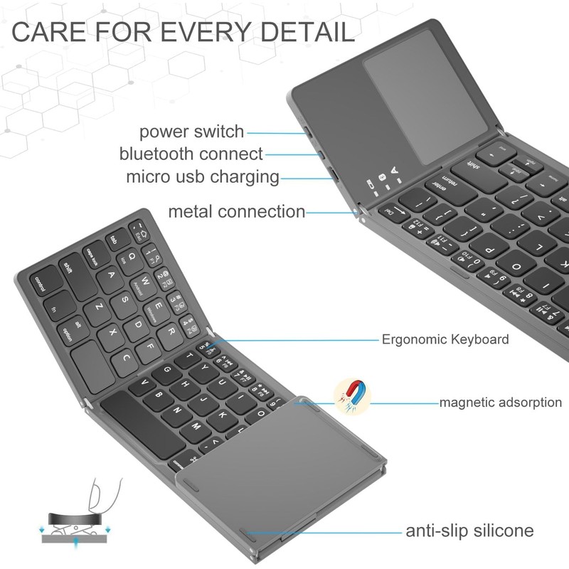 Foldable Bluetooth Keyboard, Wireless Portable Keyboard with Touchpad, Rechar...