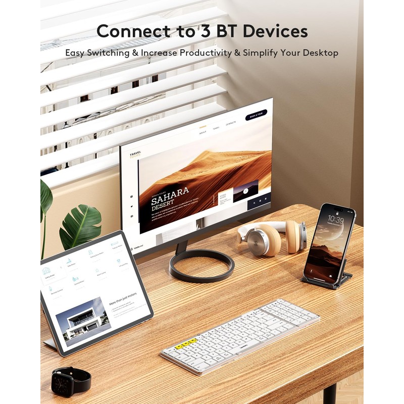 - 【Delicate Portable Keyboard】White PU leather appearance, made of ABS+PU material, lightweight but stable, no need to worry about daily wear or scratches. Elegant layout design, excellent tactile feel and simple appearance make it a perfect match for your tablet, phone and laptop. The Great gift for travel and business trips!