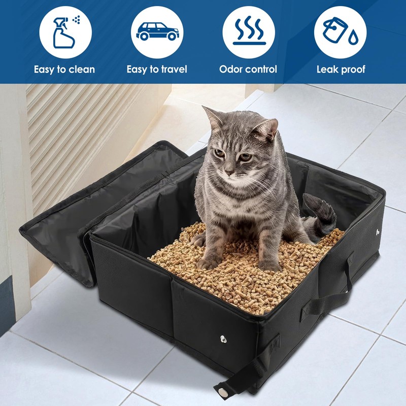 - ✅【High-quality material, durable】The outer layer of the foldable cat litter tray is made of 600D waterproof PVC fabric, which has excellent waterproof and tear resistance; the inner layer uses PP rubber sheet, which is tough and does not deform. The edge reinforcement treatment effectively resists the wear and tear caused by cat scratching, ensuring a longer service life.