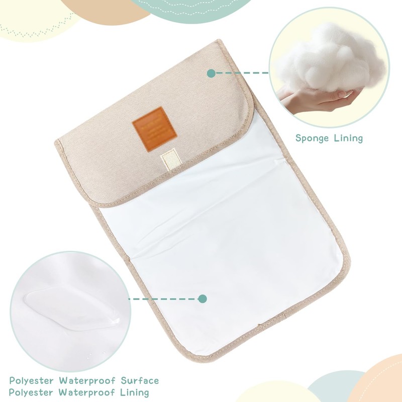 - Washable and comfortable: our travel changing mat is made of three layers of washable, comfortable materials that make nappy changing easier. The top layer is made of easy to clean waterproof polyester, the second layer provides soft breathability with sponge padding and the third layer is also made of waterproof polyester to prevent leakage.