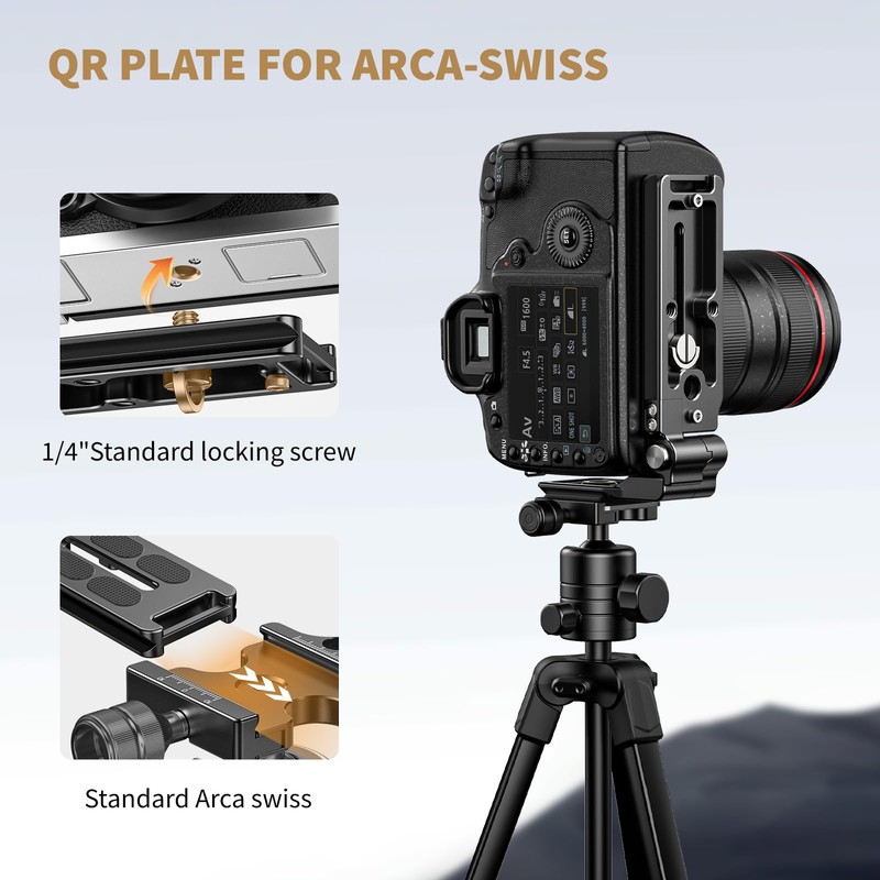Foldable DSLR Camera L Mount - Arca Base Universal Vertical Camera Mount Horizontal Shift Tripod Quick Release Plate