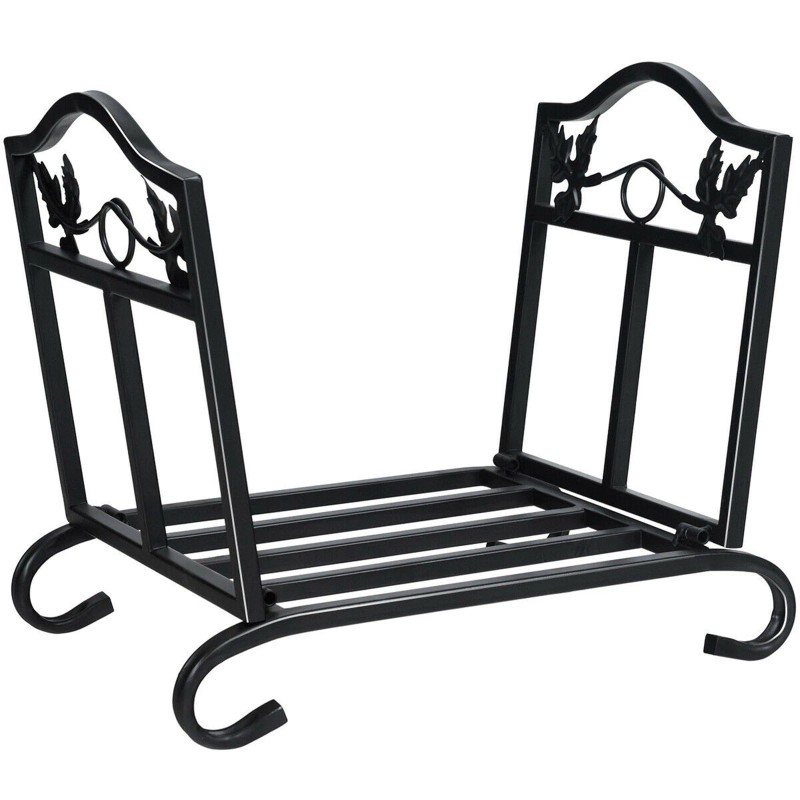 Foldable Firewood Log Rack Steel Wood Storage Holder for Fireplace Black