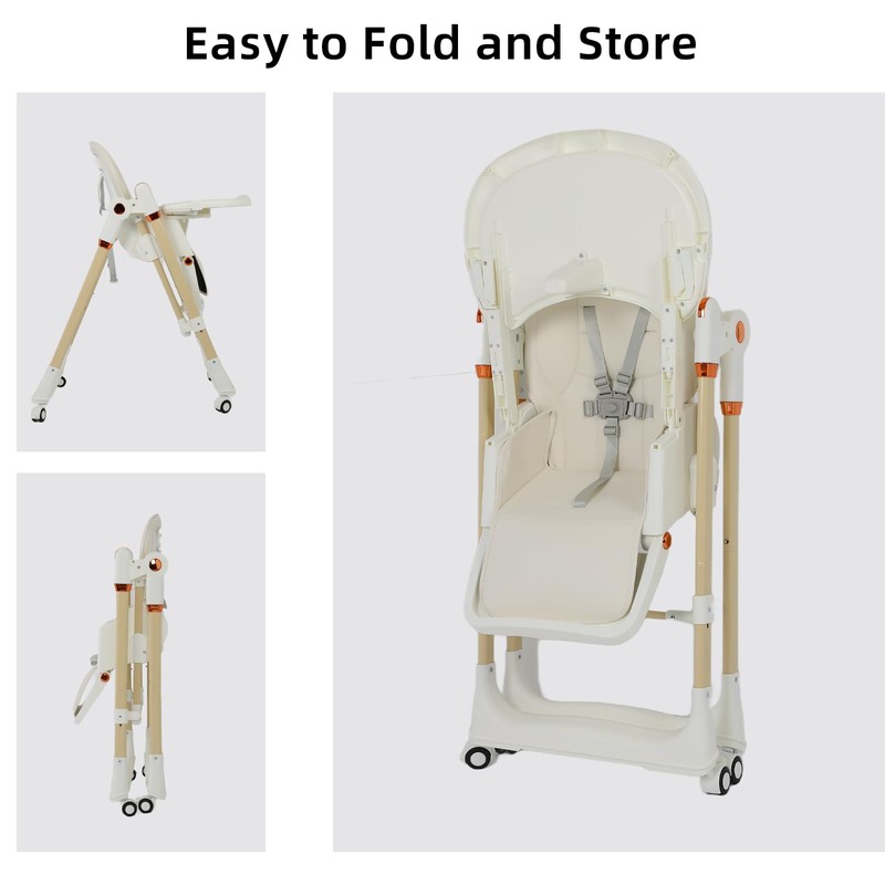 - 【CUSTOMIZABLE COMFORT FOR EVERY STAGE】— Perfect fit, every time. With 8-level height adjustment, 3-position recline, and an adjustable footrest, this chair supports healthy posture whether your baby is eating, playing, or gently swinging. It adapts to any table and any room's layout. 【SPACE-SAVING FOLDING DESIGN】— Perfect for modern homes. The chair folds flat in one swift motion without sacrificing stability. Its compact form allows for easy storage in closets or corners, making it ideal for apartments and smaller spaces.