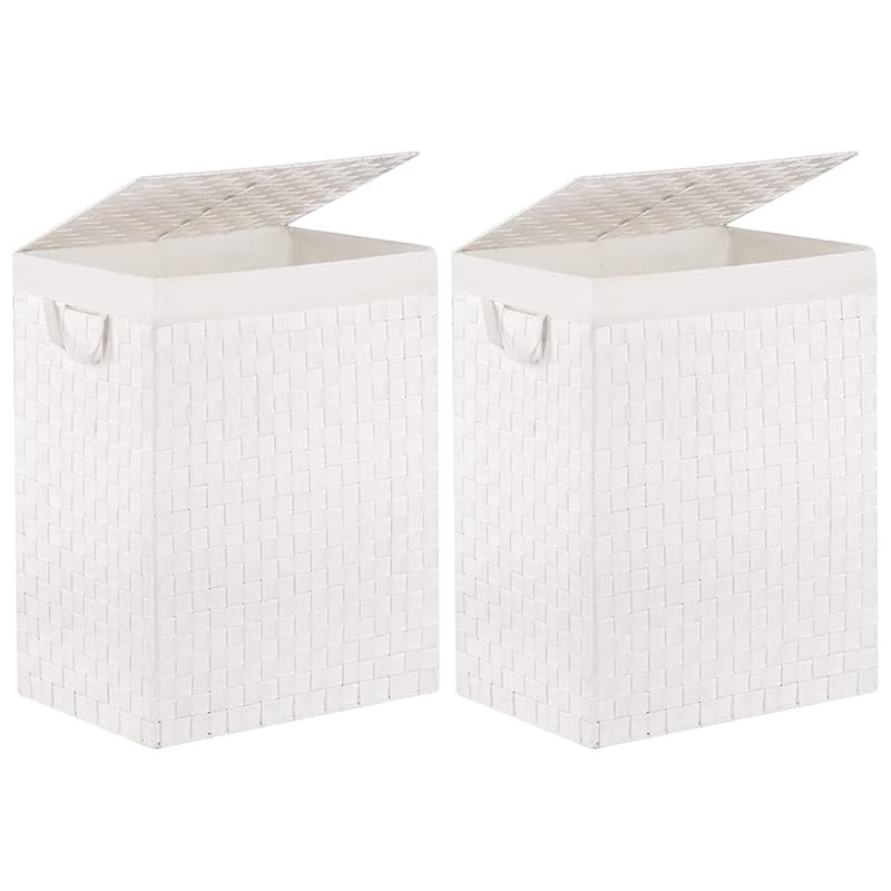 - 【HANDWOVEN CRAFTSMANSHIP】The laundry hampers are made of sturdy fiber tape materials that are breathable and environmental. The laundry basket is made by professional craftsman, and each piece is unique, so there are subtle differences. The hamper with lid will keep your room tidy and clean, it will decorate your bedroom, living room, baby room, laundry room and dorm while using.