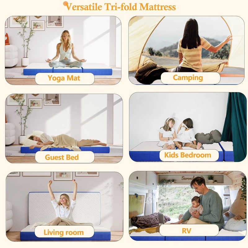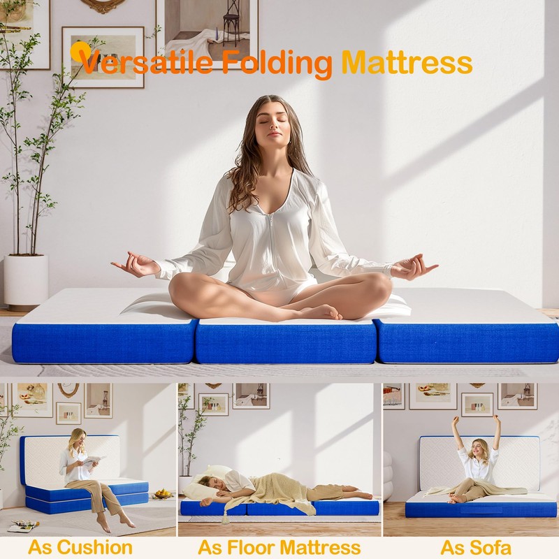 - 【Tri-fold Memory Foam Mattress】Made with premium memory foam and comfort fabric, our mattress provides strong support and soft touch. Foldable design is more convenient to carry and store, making it ideal for camping, guest rooms, or even a relaxing afternoon nap.