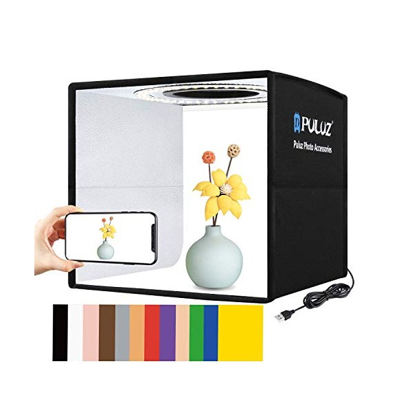 - DIFFERENT BACKGROUNDS -- Our professional LED light box comes with12 backdrops(white/black, red/pink, yellow/orange, blue/purple, green/brown, gold/gray (6 sheets, available on both sides)), so you can easily switch background colors and build up various shooting effect as needed. Just fix the background paper in the top slot