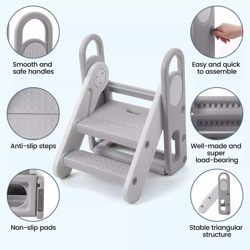 Foldable Step Stool for Kids Adjustable 3 Step Stool with Handle Stepping Ladder