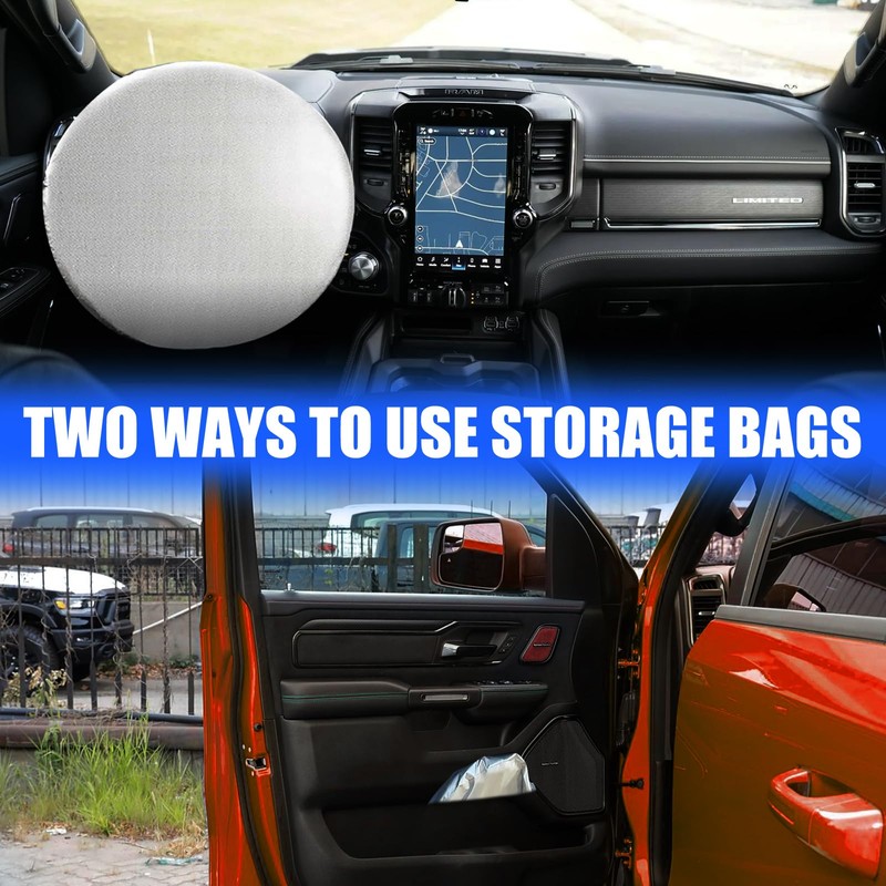 - 2025 Upgrade: WODSTA window shade storage bag not only allows you to fold the sun visor and store it in, but you can also put the storage bag over your steering wheel to keep your steering wheel cooler. 2025 new design allows both the window shade and the storage bag to fulfill their roles!