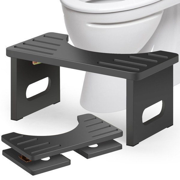 - Non-Slip Stable Design:Dual anti-slip rubber strips and a grooved footrest keep this pooping stool steady on any bathroom floor. The 7-inch height provides firm foot support, while the heavy-duty metal hinge ensures long-lasting durability for daily use