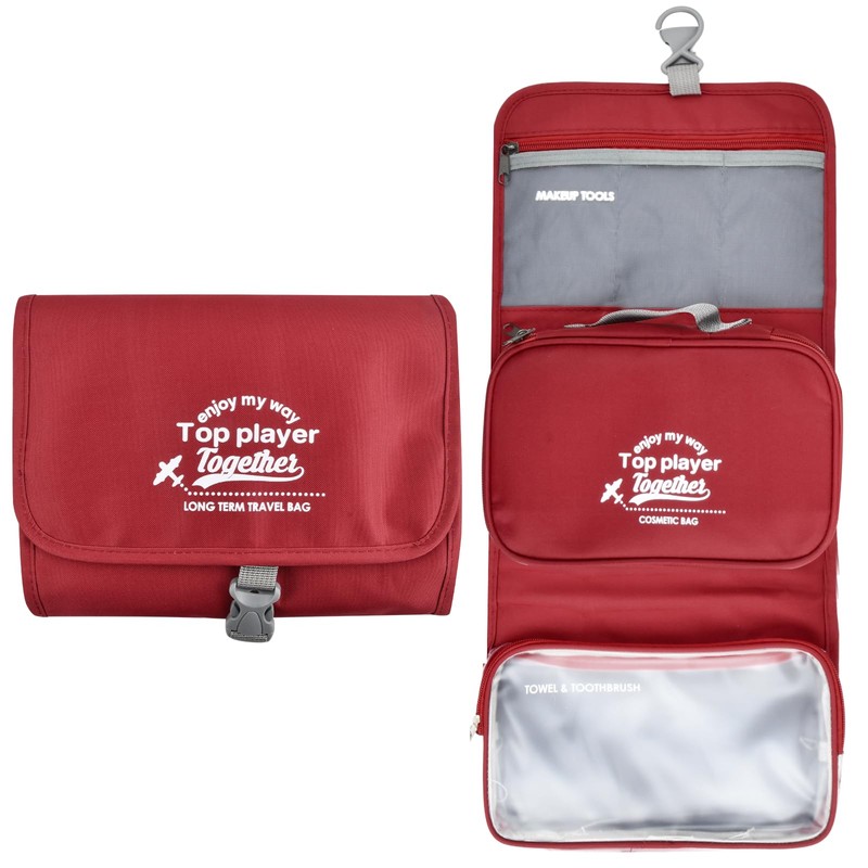 Although compact and folds up to save space, this toiletry bag offers enough space for all your toiletries. The durable and water-resistant oxford fabric material ensures that your essentials stay safe and dry, even during demanding travel. In trendy navy blue or red colour, it enriches any travel suitcase and fits perfectly with your personal style.