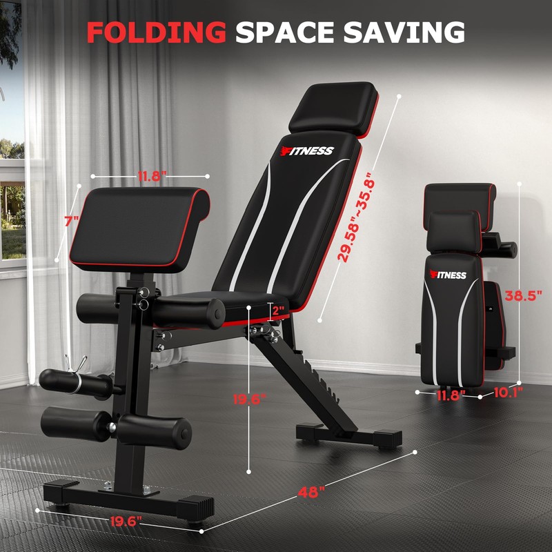 Foldable Workout Bench with Leg Extension, Adjustable Weight Bench w/Preacher Culr, Extended Headrest, Collapsible Bench for Home Gym Strength Training Exercise Full Body Banco de Pesas 880LBS