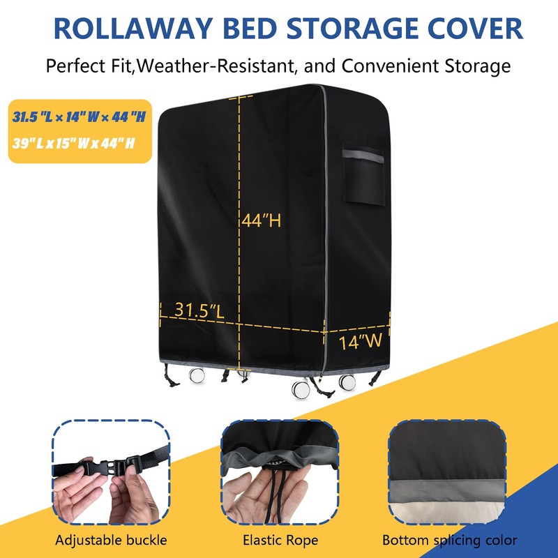 - Our Rollaway bed storage cover has two strong handles on the foldable bed cover for easy to move and store, use easily. And it has zippers on the side for easy to put in and take out. The rollaway cot cover has adjustable drawstring at the bottom, which allow to adjust the cover for a proper fit, dustproof and keep fold up bed dry and clean