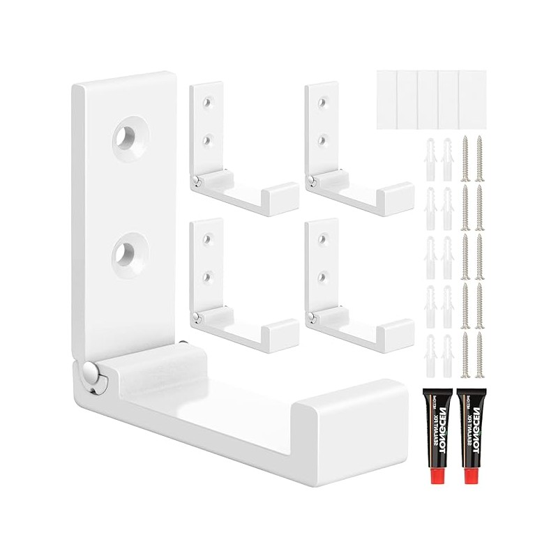 Folding Coat Hooks, 5pcs White Wall Hooks Heavy Duty for Hanging Coat Towel Backpack, Foldable Adhesive Hooks, Headphone Jacket Holder, Aluminum Alloy No Rust Hook with Screws for Purse Hat Bag Keys