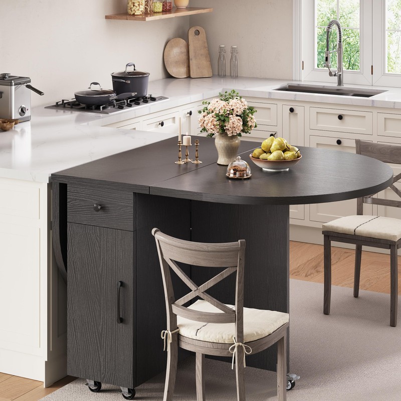 - SPACE SAVING FOLDING TABLE: (Package Includes one Table) Perfect for apartments and small spaces, this table easily folds to compact size for storage or extends to seat 4 people. Use it fully open as a dining table, fold one side for a desk or kitchen island extension, and tuck it neatly away when not in use.it folds compactly for easy storage in an entryway or corner, maximizing your space.