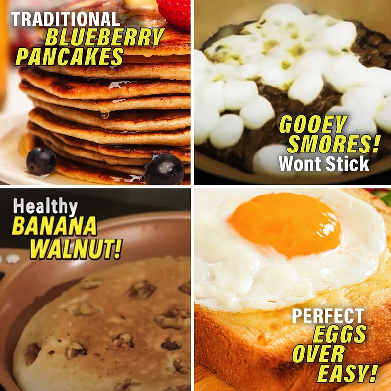 1、Foldable Frying Pan: Foldable frying pan can save space to sotre, very safe to be used on gas stove, induction cookers, charcoal stove, etc. 2、Easy and Convenient: Just pour the batter into the frying pan, close the handle, and flip it, very easy to cook breakfast at short time, just say goodby to hungry morning. 3、Multifunctional: Double sided frying pan an be used to make toasts, grilled cheese, eggs, pancakes, pancakes and more. 4、Titanium Steel Pot: Made of titanium steel, it is health, does not use oil when cooking, does not stick to the pan, and is easy to clean. 5、Double‑Sided Pan: This double‑sided flip design, flip and cook on either side, upper or lower pan. Easily flip food while maintaining heat and moisture, fast, and tender food.