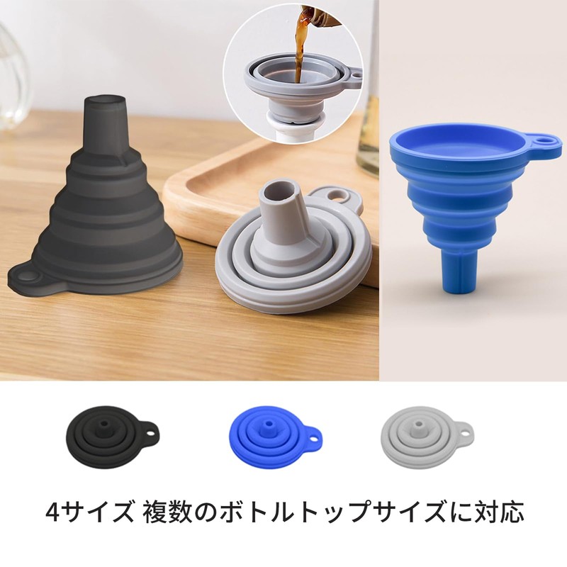 • [Product Details] Includes 4 silicone folding funnels. Size and Weight: 38g Funnel: 11*10.5*1.4cm, 20g Funnel: 8*7.5*1.5cm, 14g Funnel: 7.5*6.8*1.6cm, 11g Funnel: 7*6.5*0.9cm