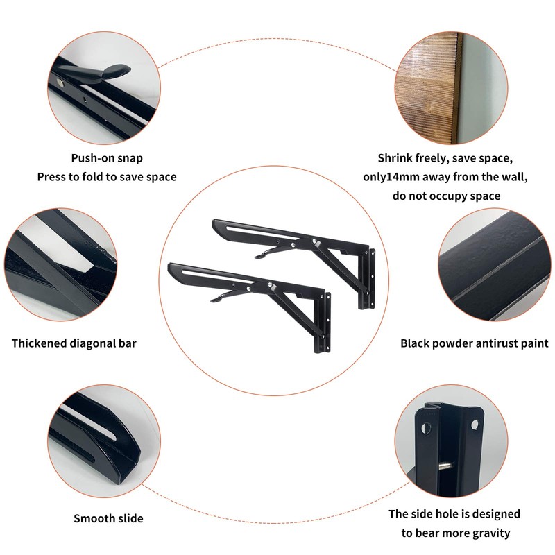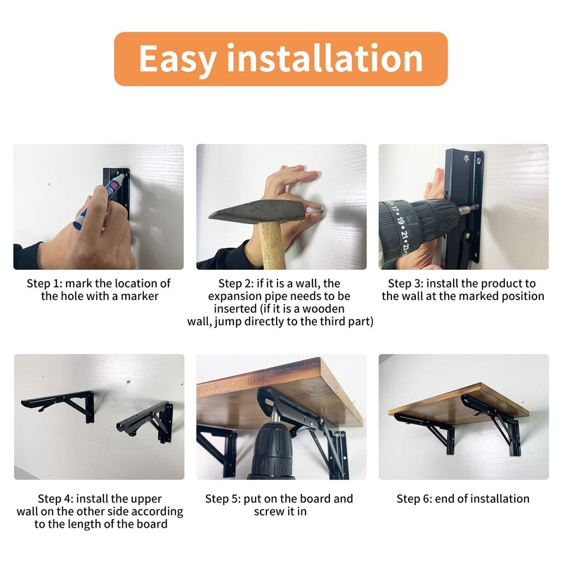 - 【Easy to Install 】You can build a folding shelf stand or a small wall-mounted folding table for your home or garage that can be mounted on any type of wall without damaging it. Details of the operation can be found in the figure on the right. Comes with 8 long screws, 8 short screws, 8 plastic expansion plugs