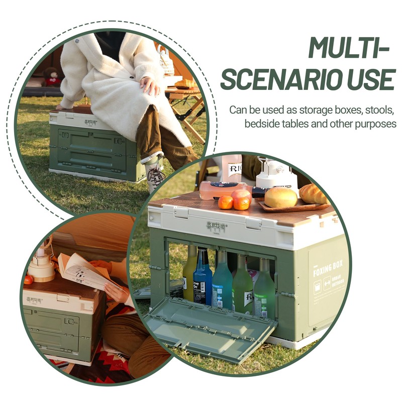 喜马拉雅 Folding Storage Box with Wooden Cover, Green Single Closet Organizer, Collapsible Storage Box, Organizing Containers Plastic with Wooden Lid for Camping Storage (Green Box with Cover)
