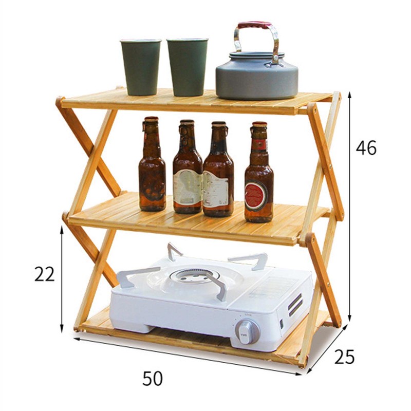 Folding Storage Rack, Powerful Load Bearing Large Storage Space Multi Layer Wooden Foldable Shelf Smooth for Outdoor Camping (3 Layers)