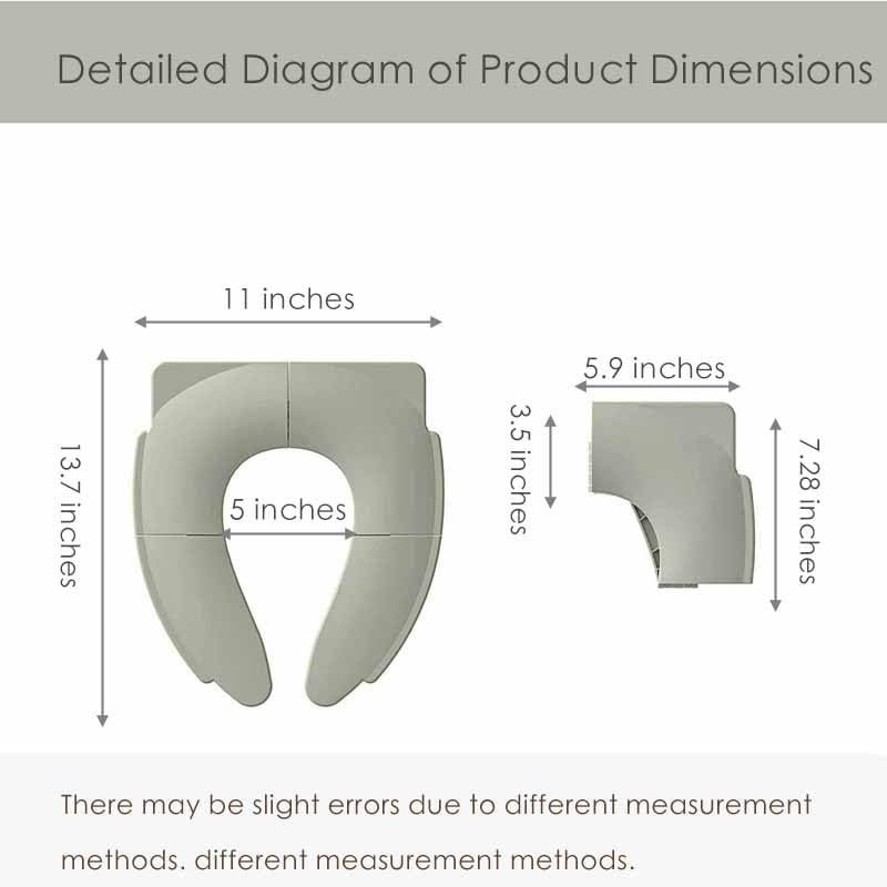 - High Adaptability and Comfort With an unfolded size of 13.5"x11", it is suitable for 99% of round/oval toilets. The thickened edge support and curved backrest protect the child's spine.