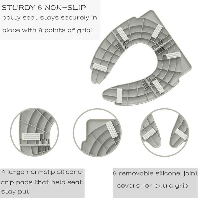 Folding Travel Potty Seat for Toddlers, Fits Round & Oval Toilets, Non-Slip Suction Cups, Includes Free Travel Bag (Gray)