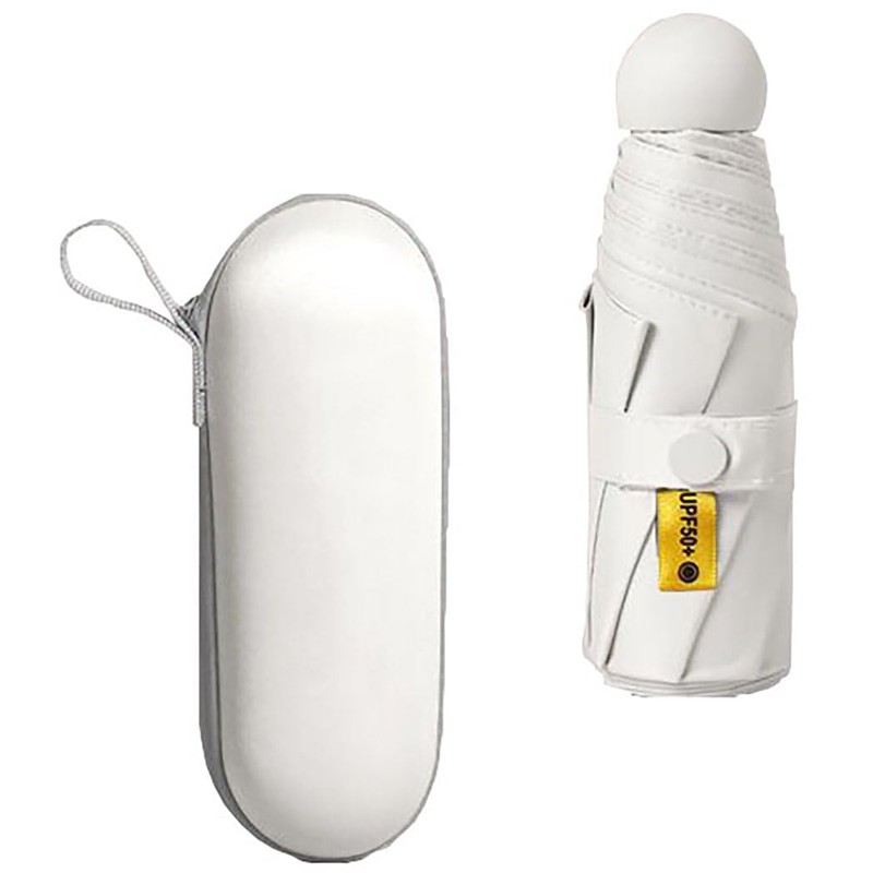 - (Ultra Small, Lightweight & Portable) This unisex folding parasol has a compact design and is very small and lightweight. You will hardly feel a change in weight even when you put it in your bag, it takes up little space and can be put in your pocket. Can be used for commuting to school, work, excursions, travel, business trips, etc. Say goodbye to clutter with this cute capsule box that solves all your storage problems