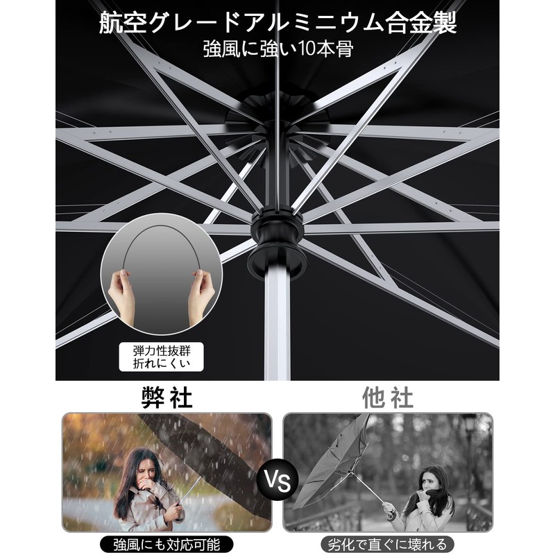 - 10 Ribs Umbrella for Strong Winds: In order to handle strong winds, our umbrella has been putting a lot of effort to design the frame and adopting a 10 ribs made of robust glass fiber. It has superior wind resistance compared to aluminum umbrellas. It is highly durable and will not easily break or break in storms or typhoons. Will not turn over in high winds Stable in extreme weather such as typhoons