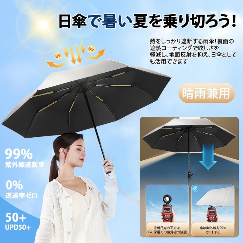 Folding Umbrella, One-Touch Automatic Opening/Closing (Large Size, Double Strand Ribs), Folding Umbrella, Reverse Foldable, Windproof, Heavy Rain, Rainy Season, Compatible with Typhoons, Men's
