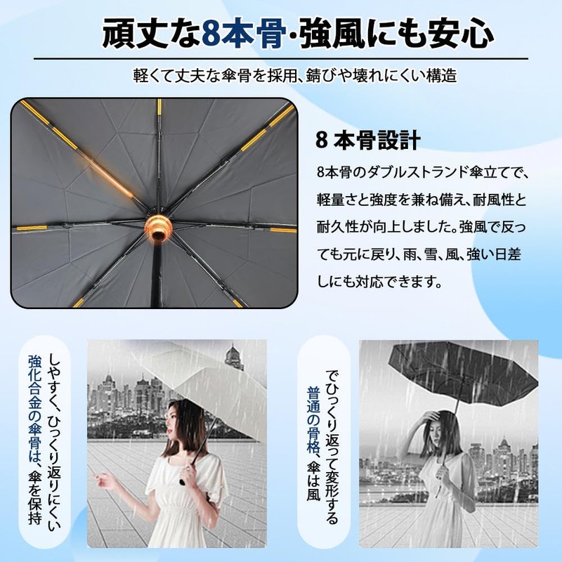 - Double Strand Ribs | High Strength Durability Against Strong Wind and Heavy Rain: The ribs are coated with corrosion for rust resistance. The ribs are made of lightweight yet durable fiberglass and high strength composite materials, and have 20% more lateral strength than ordinary umbrellas, so you can use it safely in strong winds and heavy rain. Even in the event that the umbrella flips, it will return to its original shape by pressing the open and close button to prevent it from breaking. In addition, it adopts double strand umbrella ribs structure which greatly improves wind resistance and strength. It is resistant to deformation even in strong winds, and is durable. This reliable parasol can be used safely in rain, snow, strong wind and even under strong sunlight