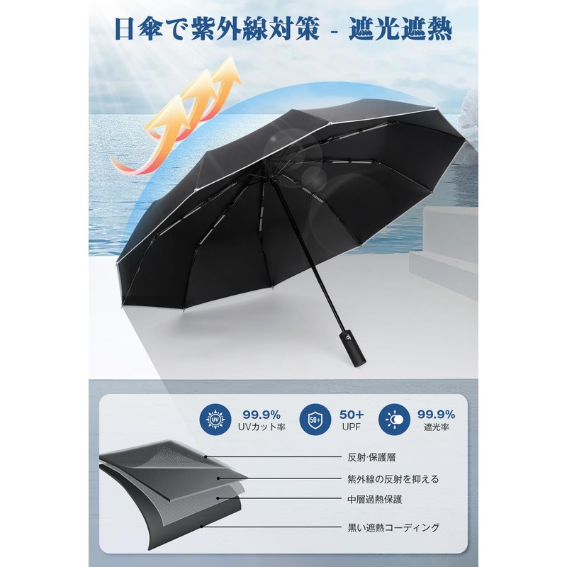 Folding Umbrella, Parasol, Extra Large Size, 10 Ribs, Includes Reflective Tape, One-Touch Automatic Open/Close, Windproof, For Both Rain and Shine, UV Protection, Lightweight, Durable, Men's, Women's,
