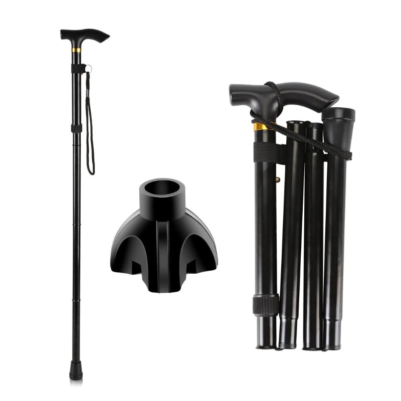 - Folding Walking Cane - The walking cane for adult smoothly and securely into place, providing additional stability. With an ergonomically designed T-shaped handle for maximum safety and comfort, this foldable cane is compact and easy to fit into a purse, briefcase, carry-on or wheelchair bag.