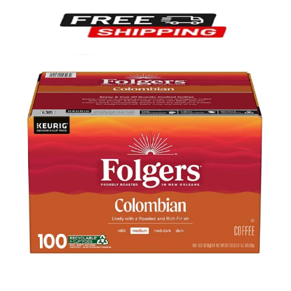 Folgers Medium Roast K-Cup Coffee Pods, 100% Colombian, 100 ct.