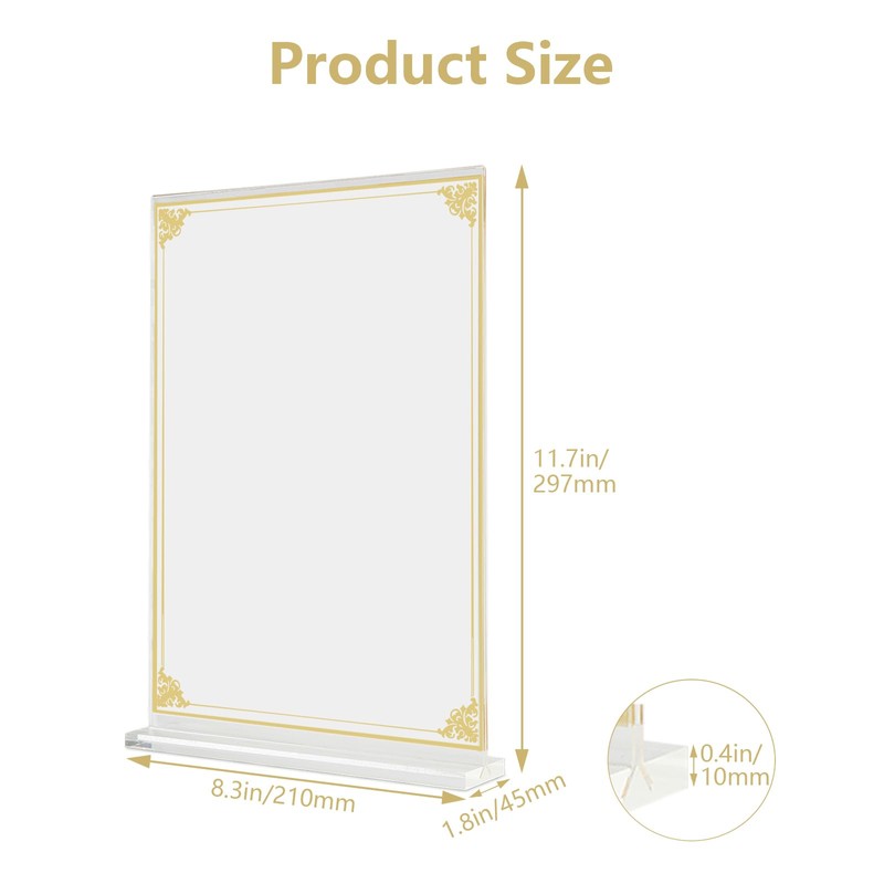 - 🟩Perfect design: The underside of the acrylic frame is a acrylic base with an T-shaped design for better stability. Gold coloured bezel makes it stand out. The cutting process of the acrylic frame uses rounded corners and polished edges.