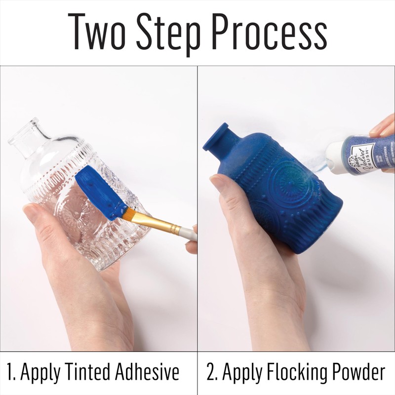 - 2-STEP APPLICATION – Apply two coats of tinted adhesive then flocking powder while tinted adhesive is still wet.