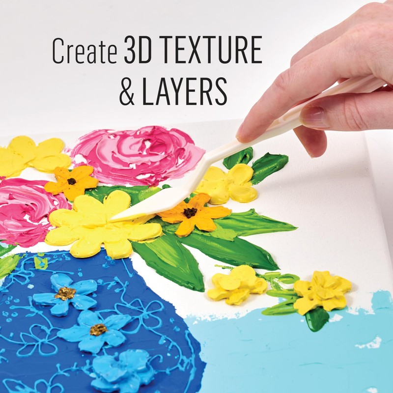 - TEXTURED EFFECTS—Heavy–bodied acrylic paint creates textured 3D effects through a variety of applications and techniques, drying to an opaque, matte finish.