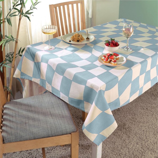 • MODERN DESIGN - This rectangular tablecloth or baby blue tablecloth measures 60 x 84 inches. These table cloth rectangle have an elegant design that exudes vintage vibes. The linen table cloth or blue gingham tablecloth will protect your tables from dust and scratches.
