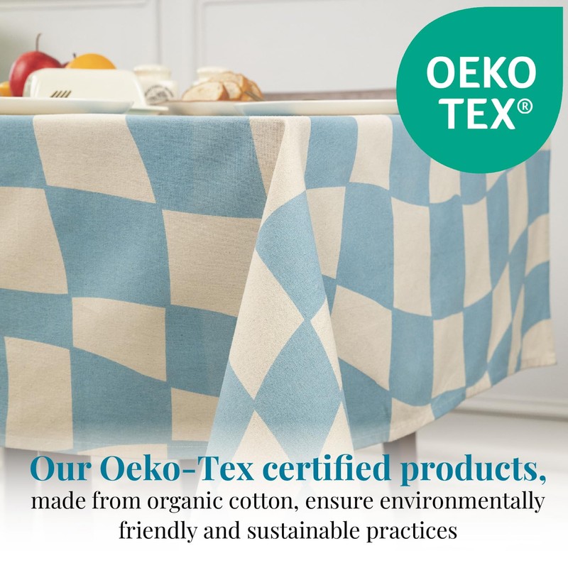 • PREMIUM QUALITY - These modern table cloths or tablecloths for checkered decor are made of 100% woven cotton. They come with beautiful hem stitch detailing at the bottom to give this bohemian table cover or picnic table cloth an elegant look. This dusty blue table cloth or white rectangle tablecloth will match all home interior settings.