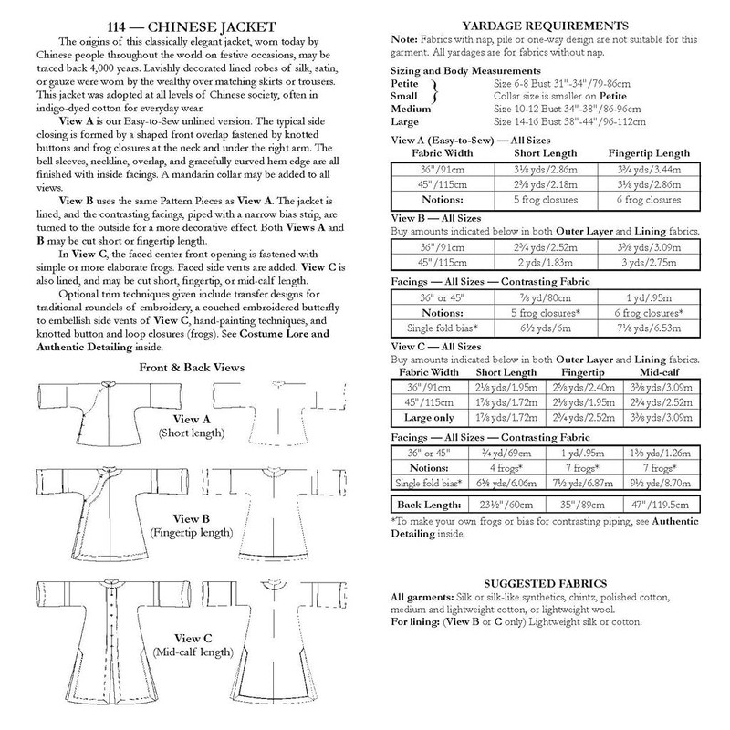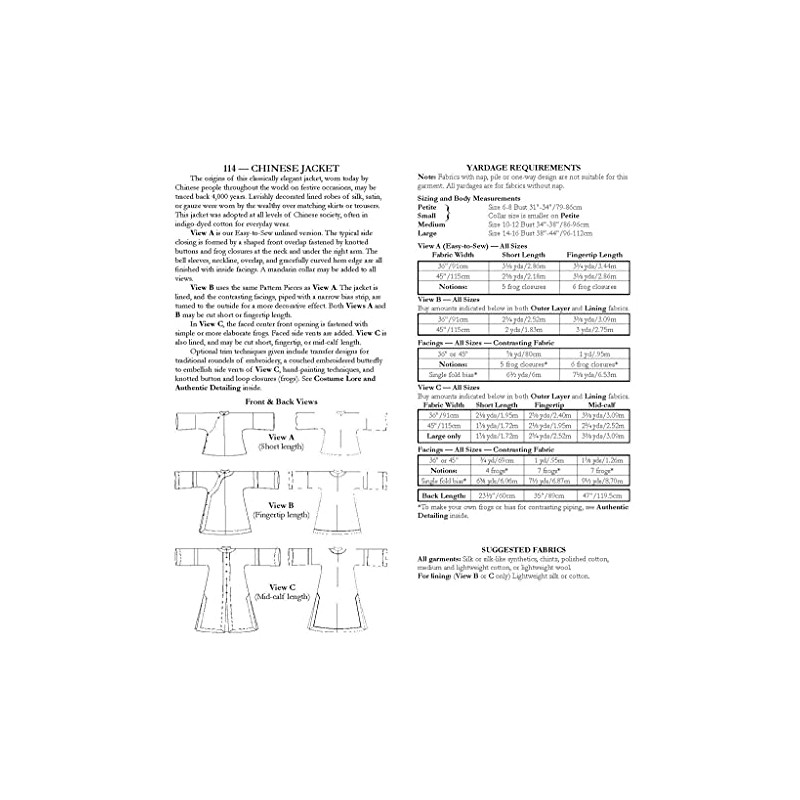 Folkwear Chinese Jacket #114 Sewing Pattern (Pattern Only)