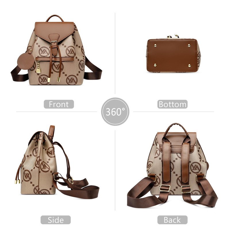 Stylish Leather Backpack for Women: Size: 22* 14* 26CM. Weight: 0.60 KG. Style: Printed design, elegant and fashionable. Material: High quality PU leather, flexible, waterproof and wear-resistant. Large Capacity: With 1 front pocket and 3 internal pockets, the multi-pocket design backpack can store a 7.9-inch iPad, mobile phone, umbrella, wallet, cosmetics, wallet and other personal belongings for reasonable storage to meet your daily needs. Stylish Design: The exterior of the women's backpack has exquisite prints, and the flap drawstring design makes the bag more fashionable and unique. It is classic and fashionable enough for daily use. Excellent Quality: Made of high-quality PU leather, flexible and wear-resistant, easy to clean. The bottom is designed with wear-resistant and rust-proof metal rivets, which reduces the friction between the bag and the ground. The exquisite and durable hardware accessories make the backpack more durable. Comfortable to Carry: The backpack handles are sewn with precision stitching, making them extremely strong and soft to hold, relieving your stress and keeping you comfortable and relaxed. Adjustable Shoulder Strap: The backpack comes with soft and comfortable shoulder straps that you can adjust to a comfortable position or use it as a shoulder bag/backpack/handbag to suit your style. Anti-theft and Waterproof: The design of the hidden zipper pocket and flap drawstring inside the backpack effectively prevents valuables from being stolen. The waterproof PU leather fabric protects the contents of the bag from rain, allowing you to use it with confidence. Used on Multiple Occasions: This fashionable and casual women's backpack is very convenient and everyday, suitable for women, ladies at school, shopping, going out, traveling, work parties and daily use. You will be pleasantly surprised and satisfied with its practicality and stylish appearance.