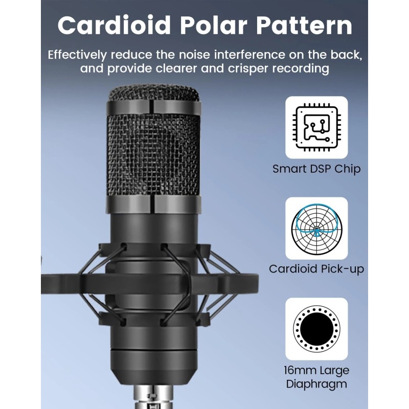 USB Plug and Play: The USB condenser microphone kit is easy to set up, plug and play, and can meet your various needs. It can automatically work with your Mac or Windows desktop laptop - no phantom power required. Provides a simple and efficient system for vocals, podcasts, singing and voice-over applications.
