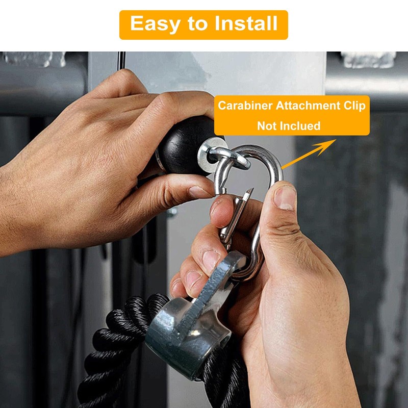 - FEATURES:Our tricep rope cable attachment is longer than the normal rope attachment. With this lat pulldown attachment, you can do your daily exercise more effective and convenient. This rope pull down attachment can be connected to the cable machine easily with a carabiner, which can save your time.