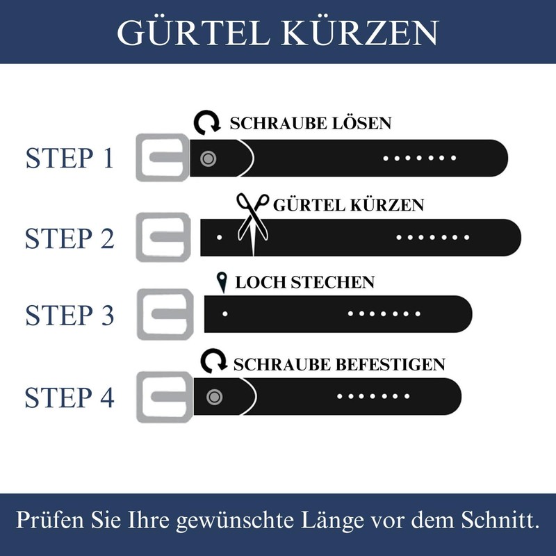 - Can be shortened length: belt too long or unsure with the length? No problem, the belt made of genuine leather can be easily shortened if required