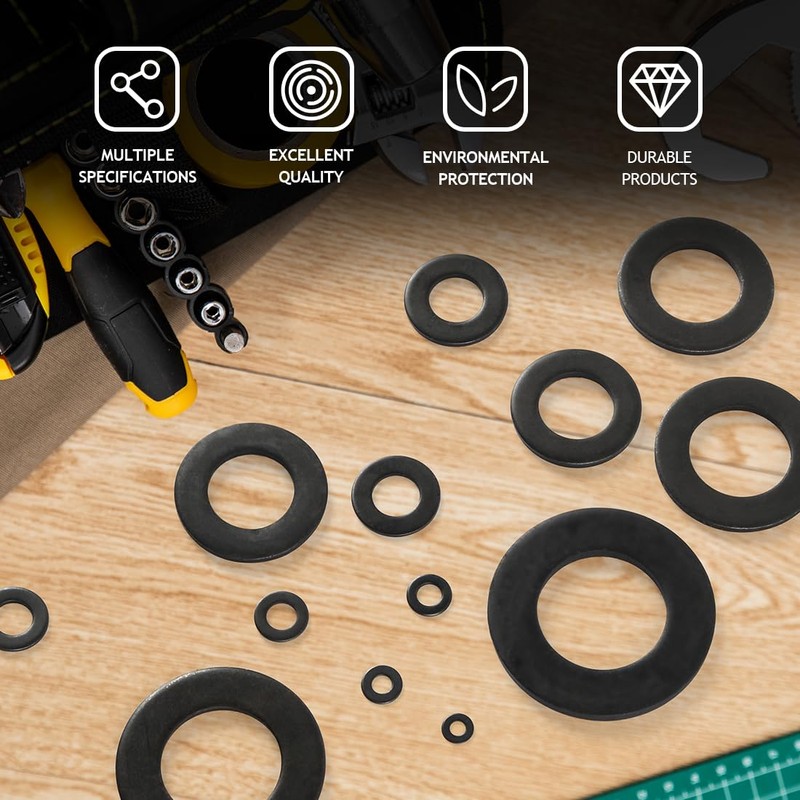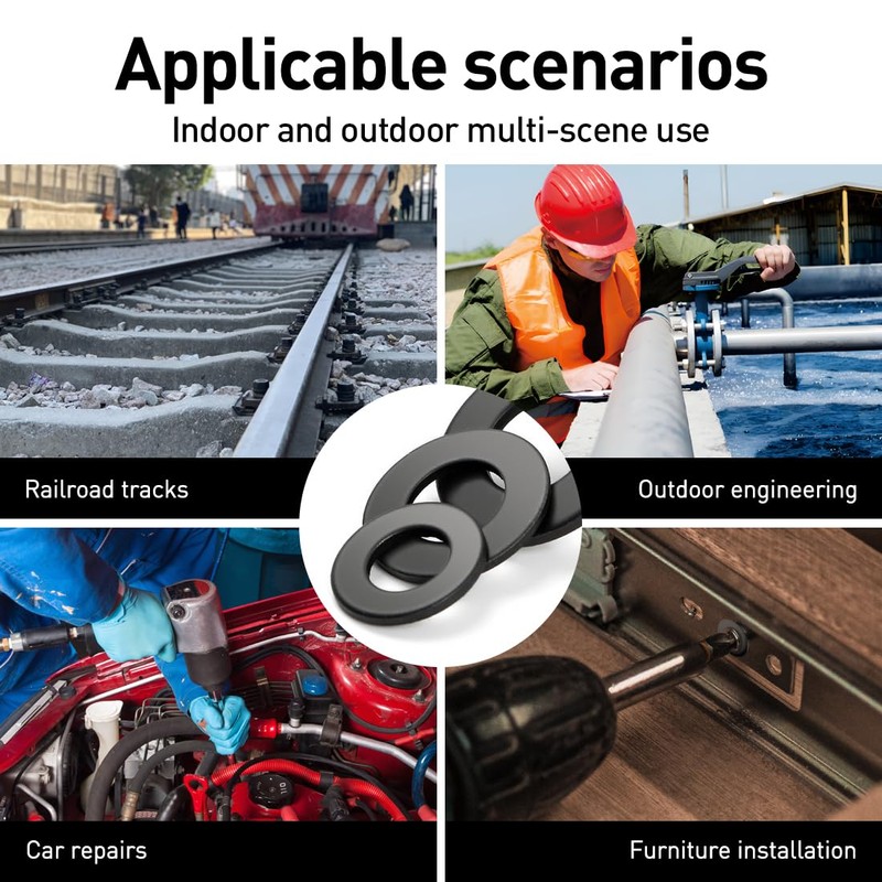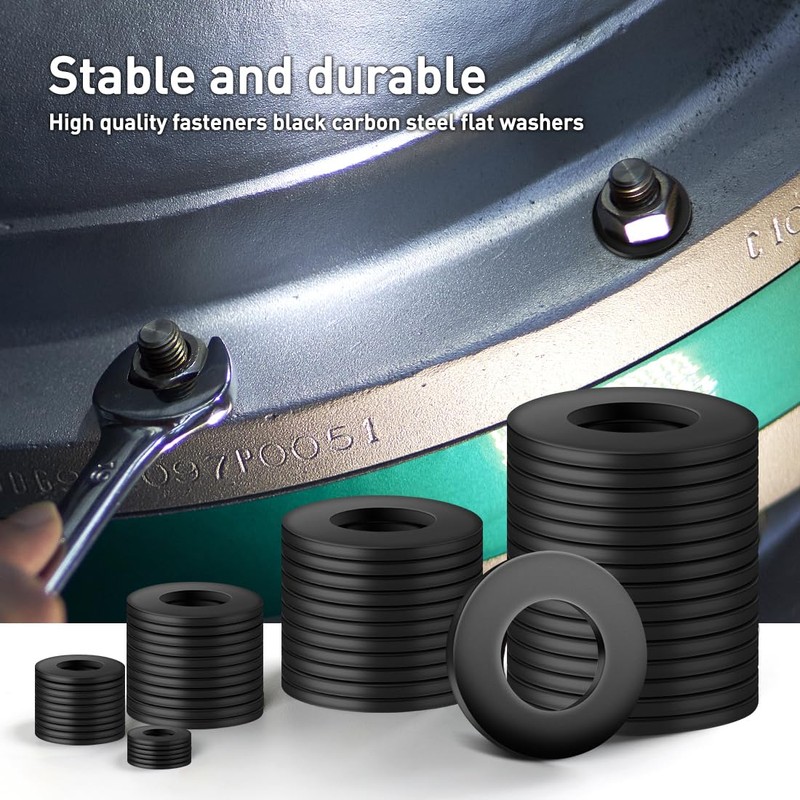 - Wide applications: the black washers are widely used in household and mechanical equipment. Such as: home repair, furniture making, room doors, tools, DIY, outdoor projects, craft products, shipping equipment, automotive applications, etc.